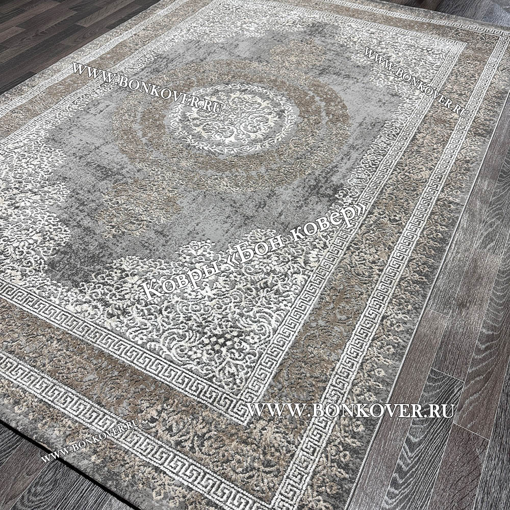 Элегантный Классический ковер дизайн 93 Коричневый с серым наполняет интерьер вашего дома теплом и уютом, гармонично сочетает в себе изящество и стиль. Он создан из высококачественного сырья, комфортный и долговечный.