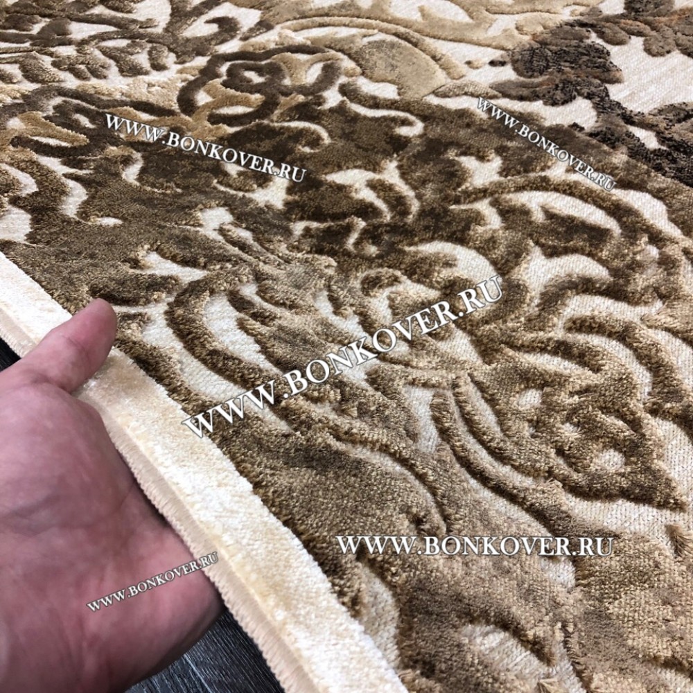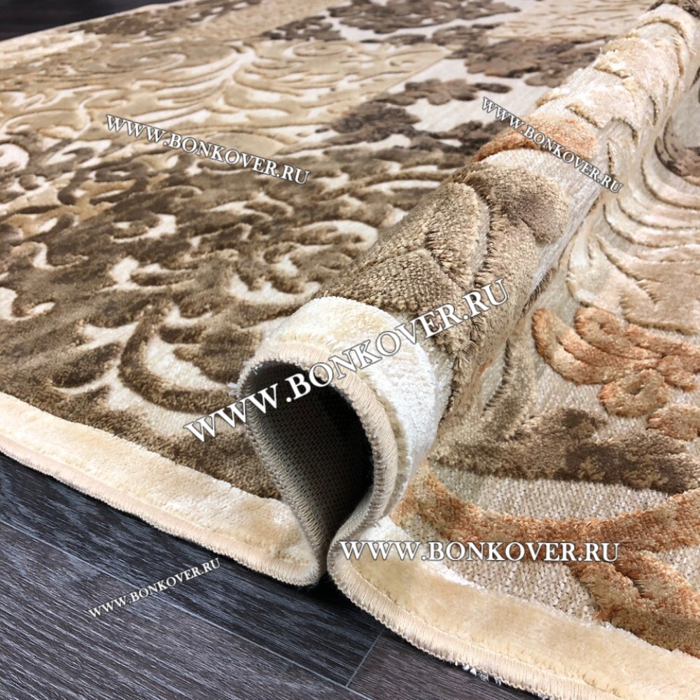 Элегантный Ковер для Гостиной из Артшелка Дизайн 22 Бежево-Коричневый Овал наполняет интерьер гостиной теплом и уютом, гармонично сочетает в себе изящество и стиль. Он выполнен из экологически чистого сырья, прочный и долговечный.