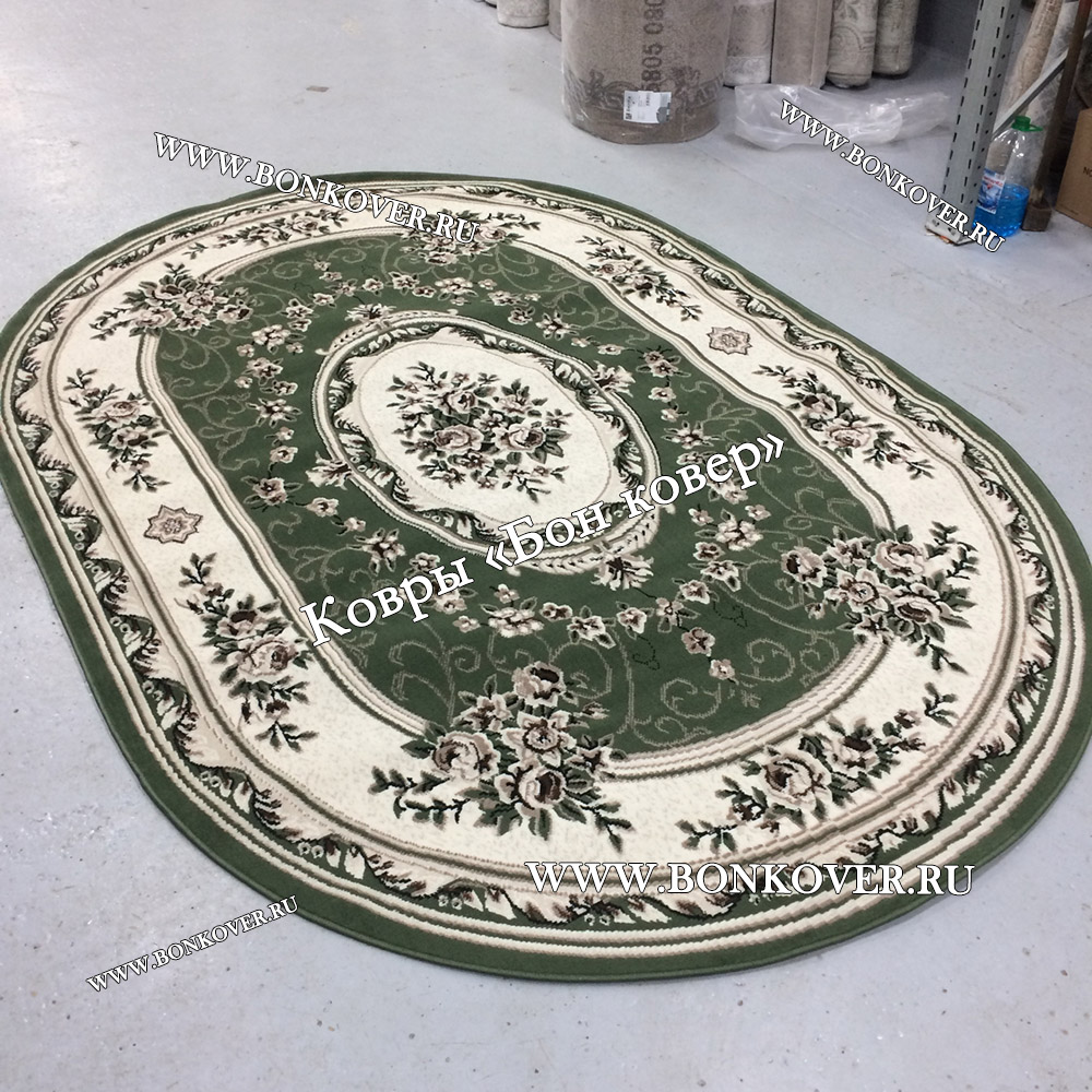 Ковер Лайт Карпет Дизайн 23896 Зеленый Овал станет великолепным преображением жилого помещения, подчеркивая высокий статус семьи владельца.