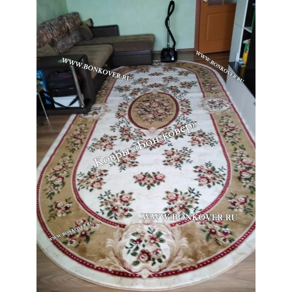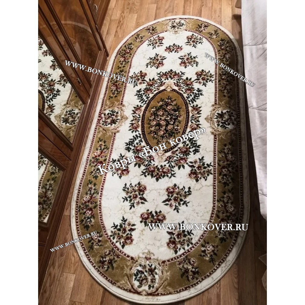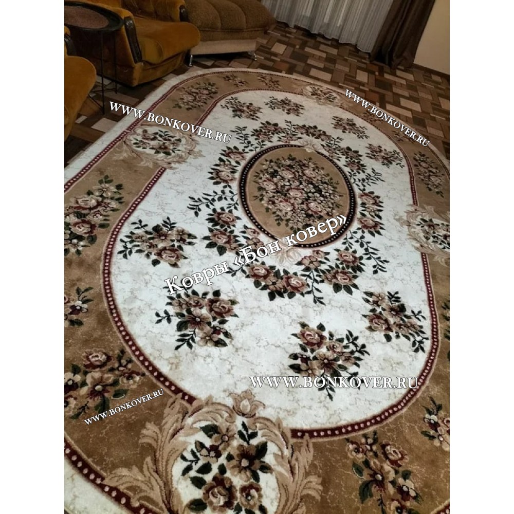 РОССИЙСКИЙ ЖАККАРДОВЫЙ КОВЕР БЕЖЕВЫЙ МЕДАЛЬОН ОВАЛЬНЫЙ станет шикарным преображением жилого помещения, подчеркивая высокий статус хозяина.