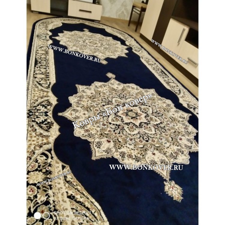 Отличный ковер , правда на размере 160х400 см разместилось две серединки - так даже гармоничнее ! Цвет темно-синий - камера плохо передает