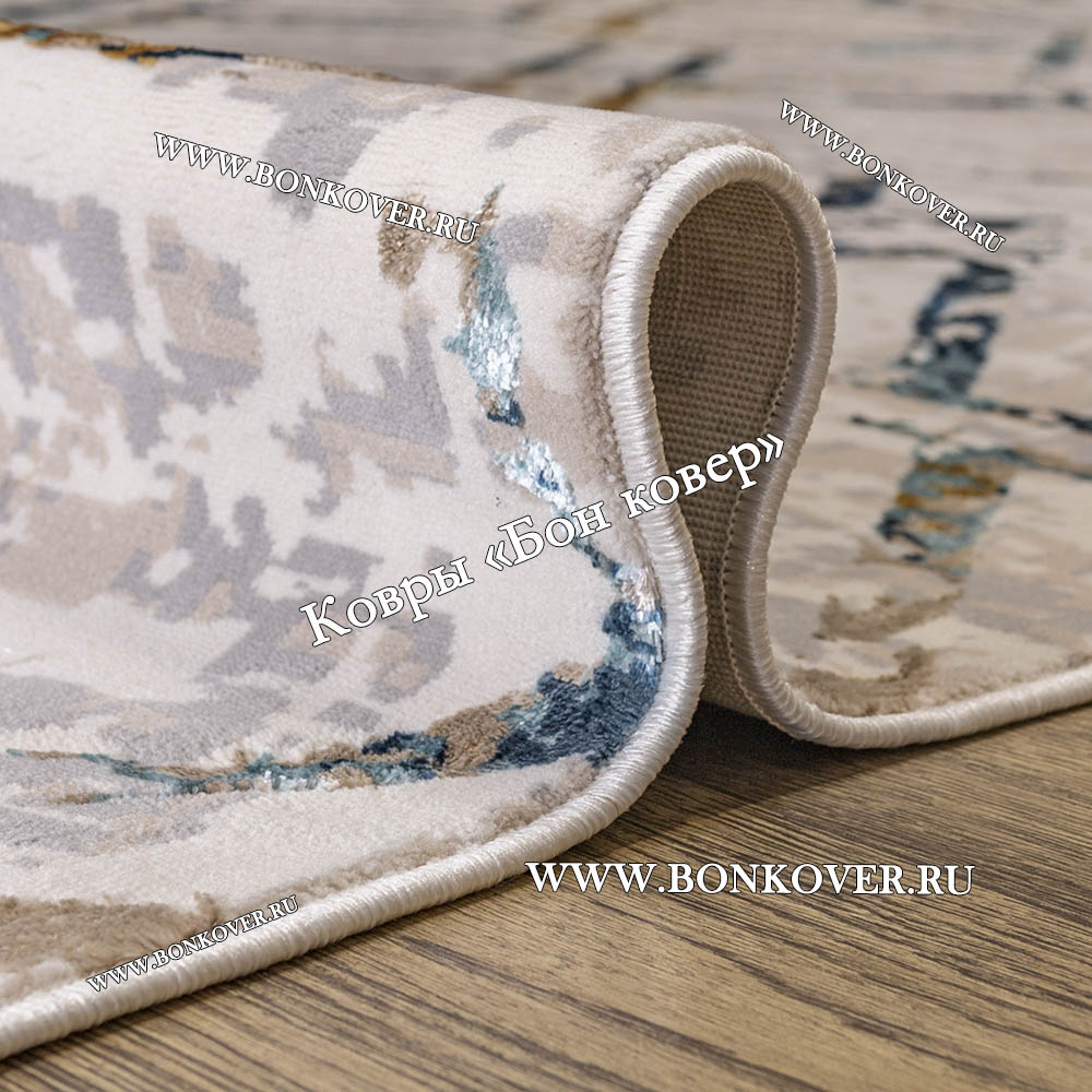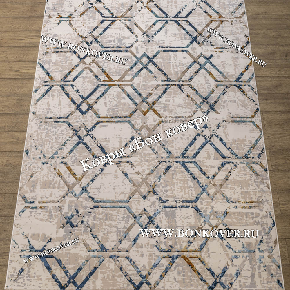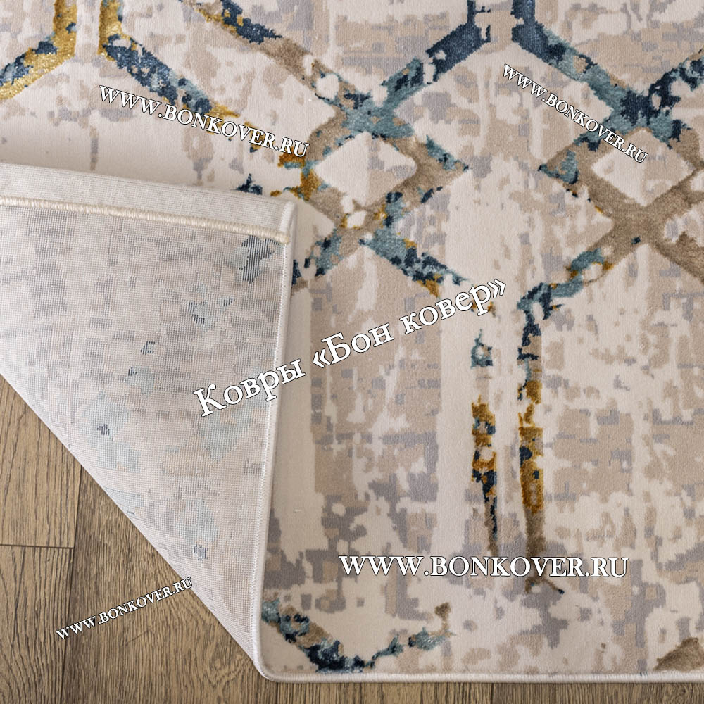 Шикарный Турецкий прямоугольный ковер Бежевый с синим дизайн 10 наполняет интерьер гостиной теплом и уютом, гармонично сочетает в себе изящество и стиль. Он выполнен из экологически чистого сырья, прочный и долговечный.