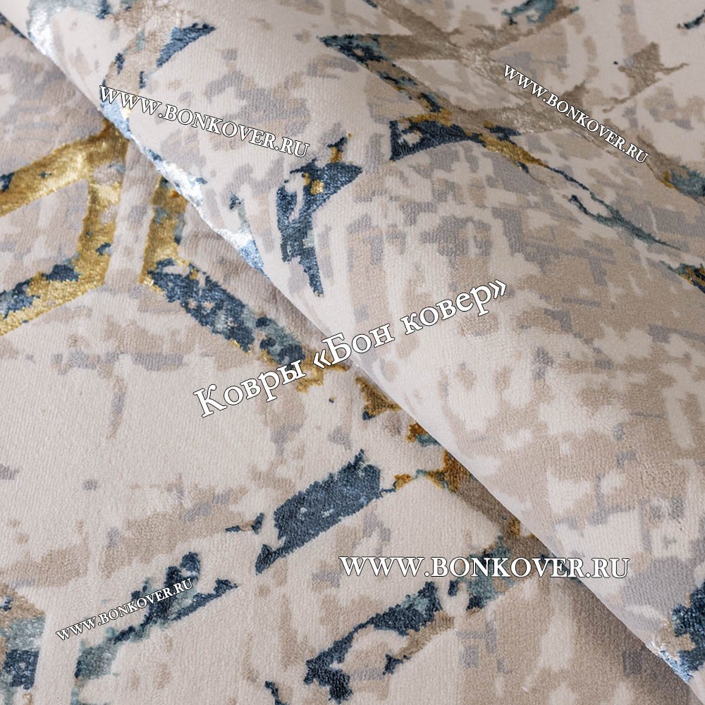 Турецкий Прямоугольный Ковер Бежевый с Золотистым дизайн 01