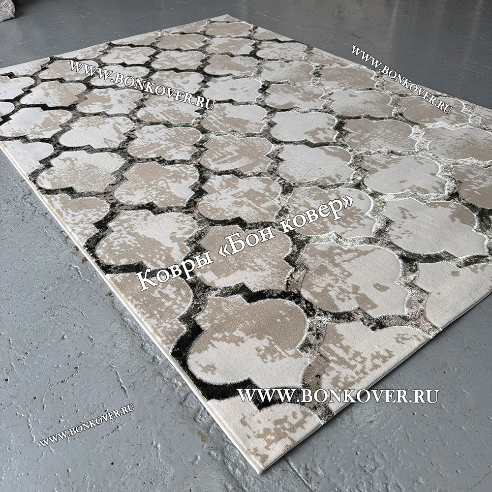 Импозантный Турецкий прямоугольный ковер серый дизайн 84 наполняет интерьер комнаты теплом и уютом, гармонично сочетает в себе изящество и стиль. Он изготовлен из высококачественного сырья, прочный и долговечный.