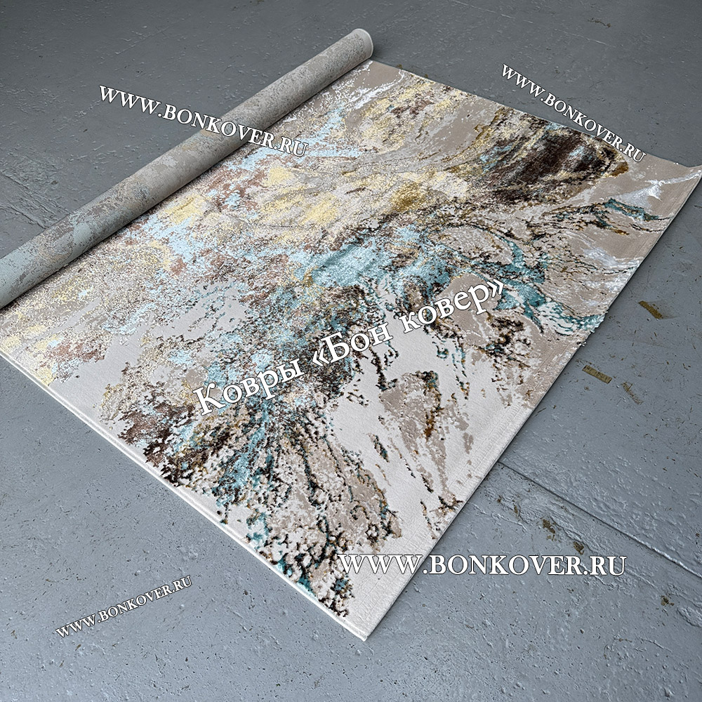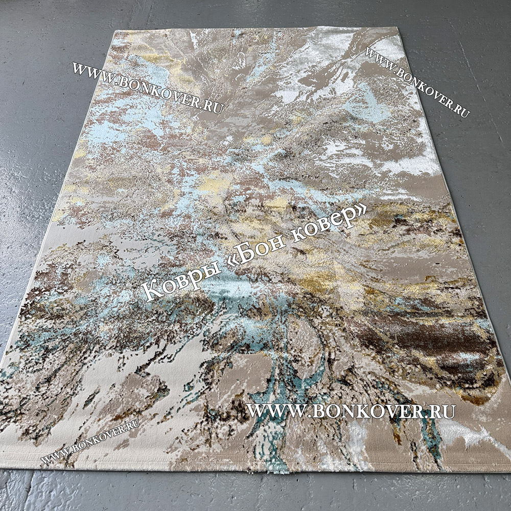 Турецкий Прямоугольный Ковер Бежевый с Золотистым дизайн 01